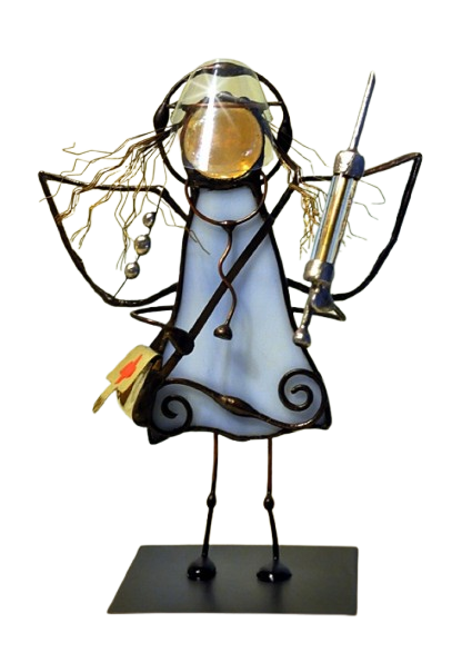 Figurka witrażowa Lekarza to piękny i wyjątkowy element dekoracyjny dla osób ceniących medycynę, troskę o zdrowie oraz sztukę. Figurka przedstawia aniołka lekarza wykonanego z wysokiej jakości szkła witrażowego Spectrum, pochodzącego z USA, oraz metali kolorowych, takich jak miedź, mosiądz i cyna. Kolorowe elementy, które składają się na figurkę, tworzą niezwykły i dynamiczny efekt, podkreślając ważną rolę lekarzy w naszym życiu.