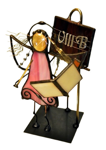 Figurka witrażowa Nauczyciela to piękny i wyjątkowy element dekoracyjny dla osób ceniących edukację, wiedzę i sztukę. Figurka przedstawia aniołka nauczyciela wykonanego z wysokiej jakości szkła witrażowego Spectrum, pochodzącego z USA, oraz metali kolorowych, takich jak miedź, mosiądz i cyna. Kolorowe elementy, które składają się na figurkę, tworzą niezwykły i dynamiczny efekt, podkreślając ważną rolę nauczycieli w naszym życiu.