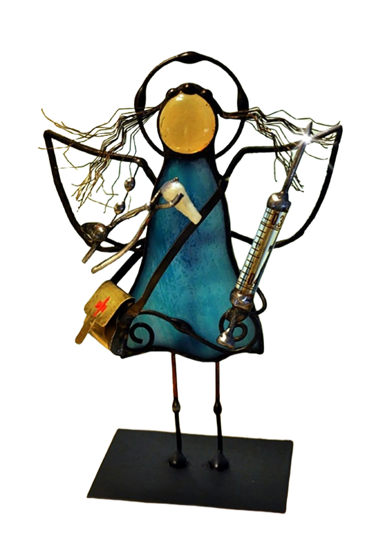 Figurka witrażowa Dentysty to wyjątkowy i piękny element dekoracyjny dla miłośników sztuki i medycyny. Figurka przedstawia aniołka dentystę wykonanego z najwyższej jakości szkła witrażowego spectrum, pochodzącego z USA, oraz metali kolorowych, takich jak miedź, mosiądz i cyna. Kolorowe elementy, które składają się na figurkę, tworzą niezwykły i dynamiczny efekt, który podkreśla ważną rolę dentystów w naszym życiu.
