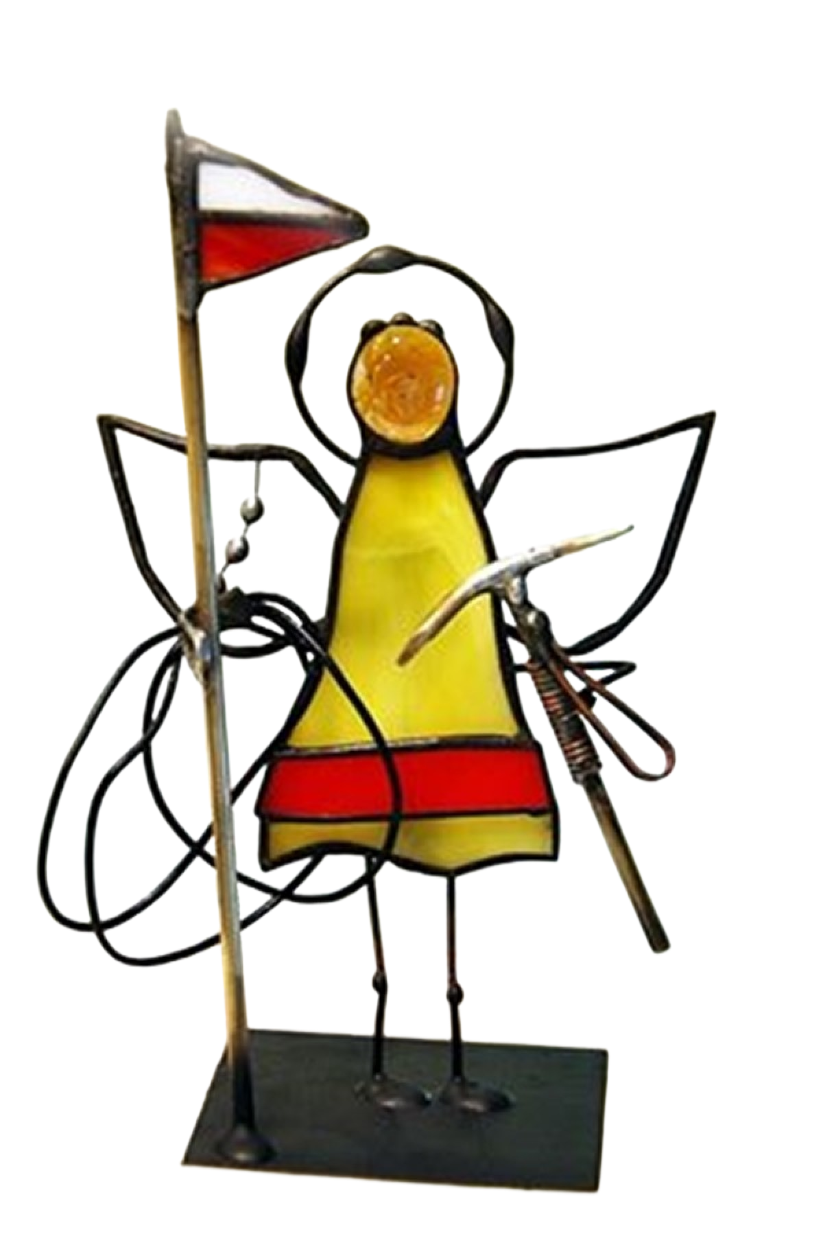 Aniołek witrażowy 3D - taternik to wspaniałe dzieło sztuki, które połącza w sobie elegancję i siłę. Wykonany z wysokiej jakości szkła witrażowego spectrum (USA) oraz kolorowych metali, takich jak miedź, mosiądz i cyna, ten aniołek emanuje pięknem i solidnością.