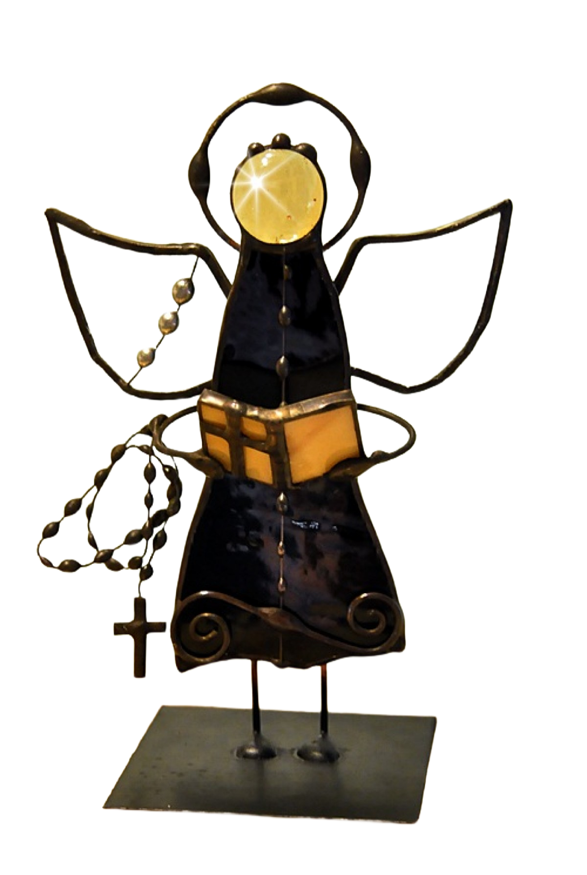 Aniołek witrażowy 3D ZAKONNICA został wykonany z najwyższej jakości szkła, które pięknie przechwytuje i rozprasza światło, tworząc magiczne efekty wizualne. Każdy detal został precyzyjnie wykonany, aby oddać delikatność i wdzięk postaci anioła oraz subtelność witrażowego wzoru.